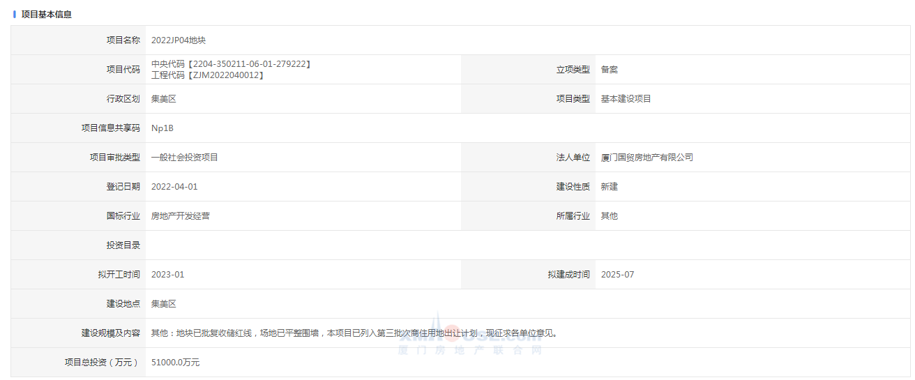 4月初,國貿(mào)后溪2022JP04地塊報建信息公布。報建表顯示,項(xiàng)目計劃明年1月開工,預(yù)計2025年7月建成。