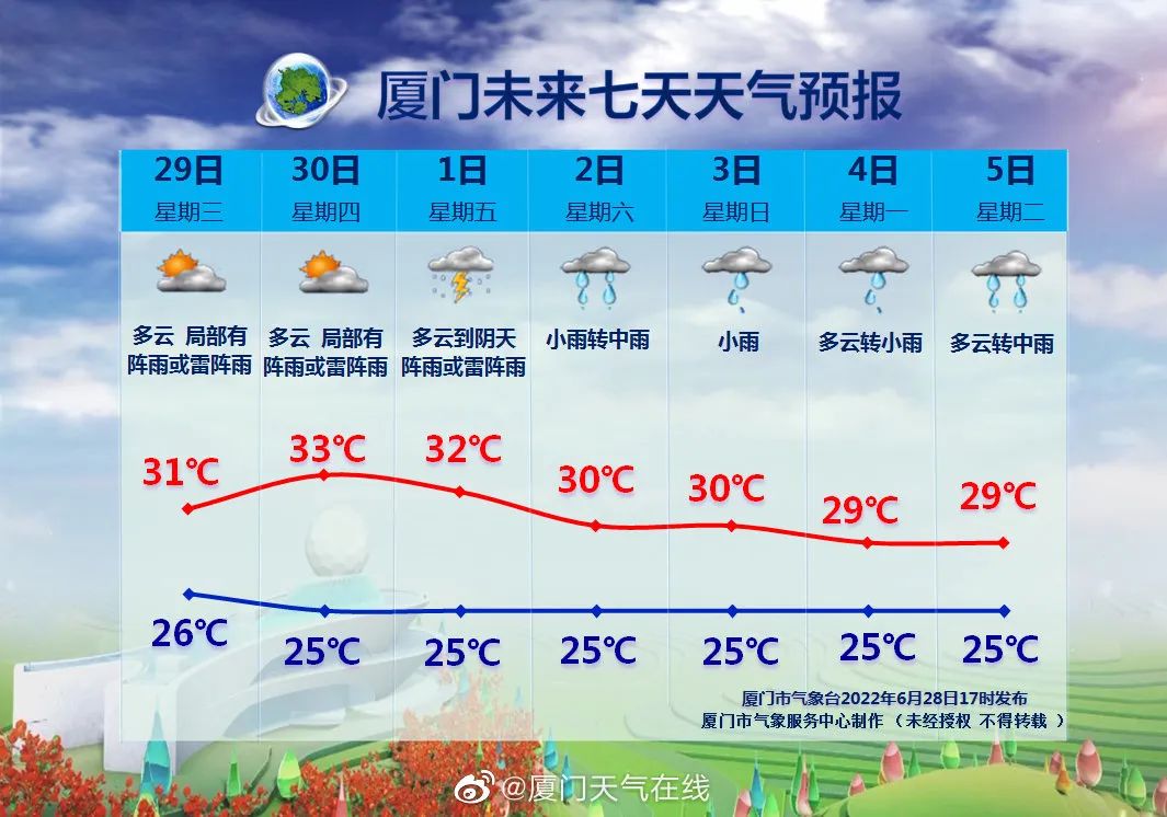 明天鷺島天氣情況與今天相似,但城區(qū)最高溫將進一步上升至33℃,越發(fā)炎熱難耐。