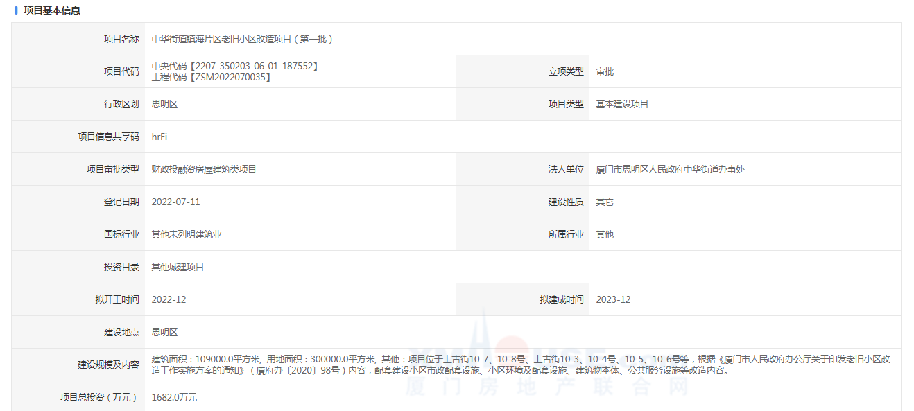 近日,中華街道鎮(zhèn)海片區(qū)老舊小區(qū)改造項(xiàng)目(第一批)報(bào)建信息公布。