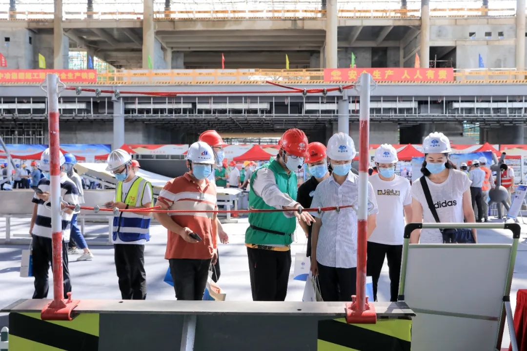 來自全市相關(guān)政府部門、建設(shè)(代建)、監(jiān)理、施工單位等近3000名代表按照防疫要求,分批次有序前往現(xiàn)場觀摩。通過現(xiàn)場觀摩、交流互動等方式,直觀地感受項目建設(shè)的安全和質(zhì)量亮點,同時在綠色施工、安全文明施工、工程質(zhì)量常見問題防治措施、安全生產(chǎn)防護標準化、綜合應(yīng)急演練、智慧工地建造等方面的新工藝、新技術(shù)及所取得的成果、亮點和經(jīng)驗、做法等方面開展了互動學(xué)習(xí)。