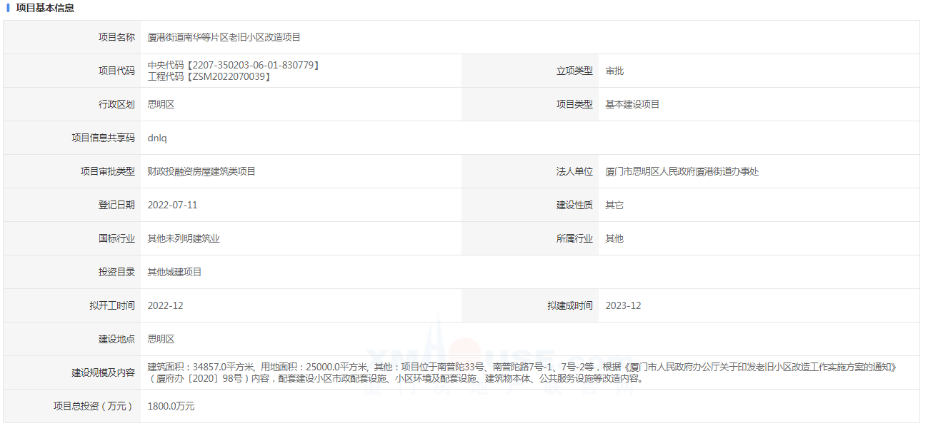 廈港街道南華等片區(qū)老舊小區(qū)改造項(xiàng)目