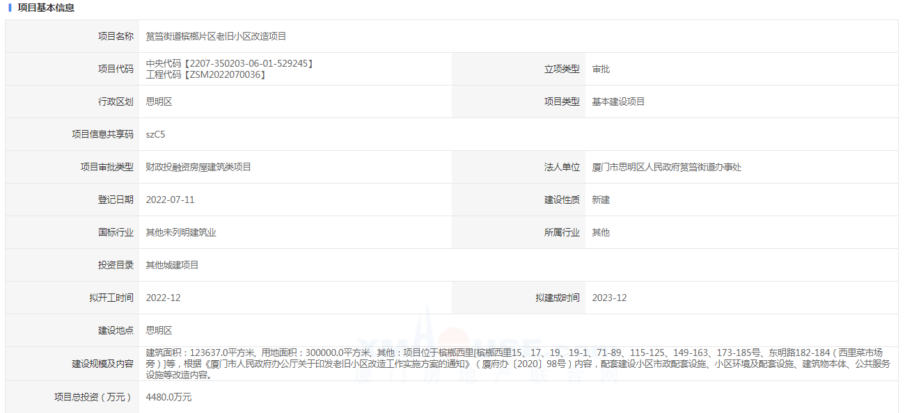 筼筜街道檳榔片區(qū)老舊小區(qū)改造項(xiàng)目
