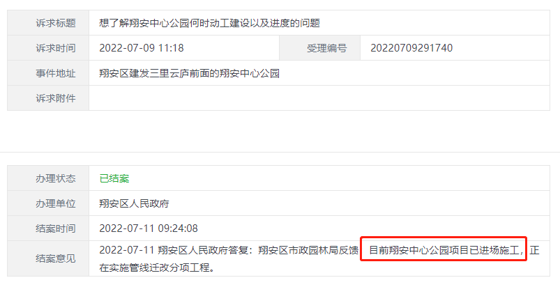 對此,翔安區(qū)人民政府答復(fù):翔安區(qū)市政園林局反饋,目前翔安中心公園項目已進(jìn)場施工,正在實施管線遷改分項工程。