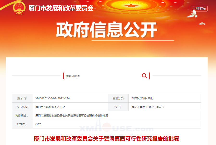 近日,廈門市發(fā)展和改革委員會(huì)發(fā)布關(guān)于碧海嘉園可行性研究報(bào)告的批復(fù),同意建設(shè)碧海嘉園。