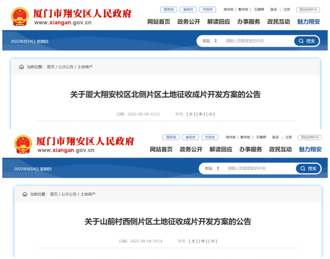 近日,翔安區(qū)人民政府發(fā)布關(guān)于廈大翔安校區(qū)北側(cè)片區(qū)土地征收成片開(kāi)發(fā)方案、山前村西側(cè)片區(qū)土地征收成片開(kāi)發(fā)方案的公告。方案涉及翔安馬巷、翔安廈大片區(qū),規(guī)劃住宅用地、建設(shè)高品質(zhì)商務(wù)辦公區(qū),開(kāi)發(fā)范圍總面積超19公頃。