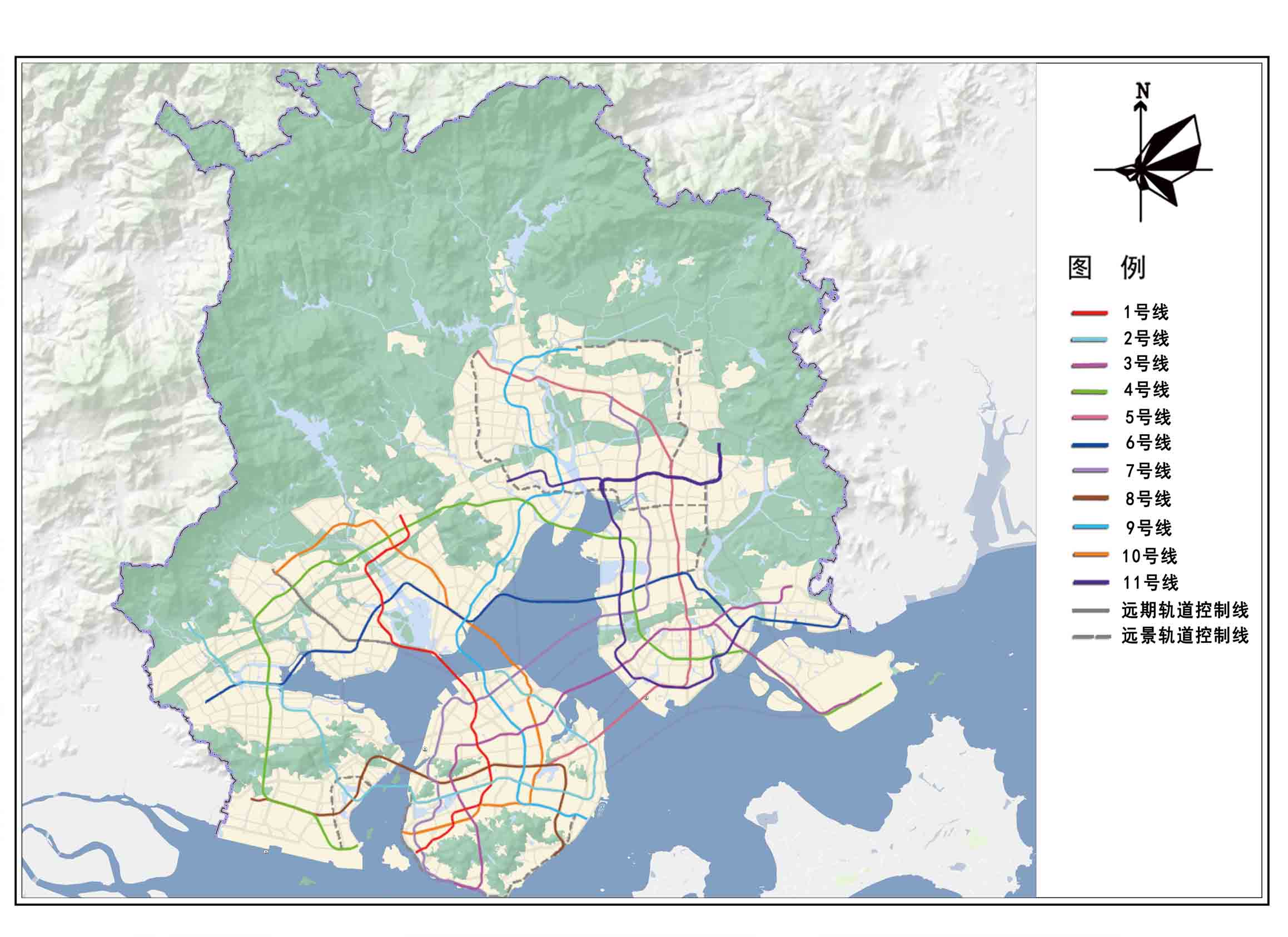 廈門市遠(yuǎn)期2035年城市軌道交通規(guī)劃線網(wǎng)由12條線路組成,總規(guī)模約493公里。其中7條普線,含1號線、2號線、3號線、6號線、7號線、10號線、11號線,約297公里;4條快線,含4號線、5號線、8號線、9號線,約186公里;1條軌道控制線,約10公里。遠(yuǎn)景規(guī)劃線網(wǎng)在遠(yuǎn)期線網(wǎng)基礎(chǔ)上增加5條軌道控制線,增加規(guī)模約79公里,線網(wǎng)總規(guī)模約572公里。