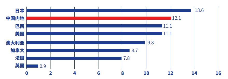 統(tǒng)計(jì)的28個(gè)大中城市的平均住房空置率依然處于較高水平,僅低于日本,高于美國(guó)、加拿大、法國(guó)、澳大利亞、英國(guó)。