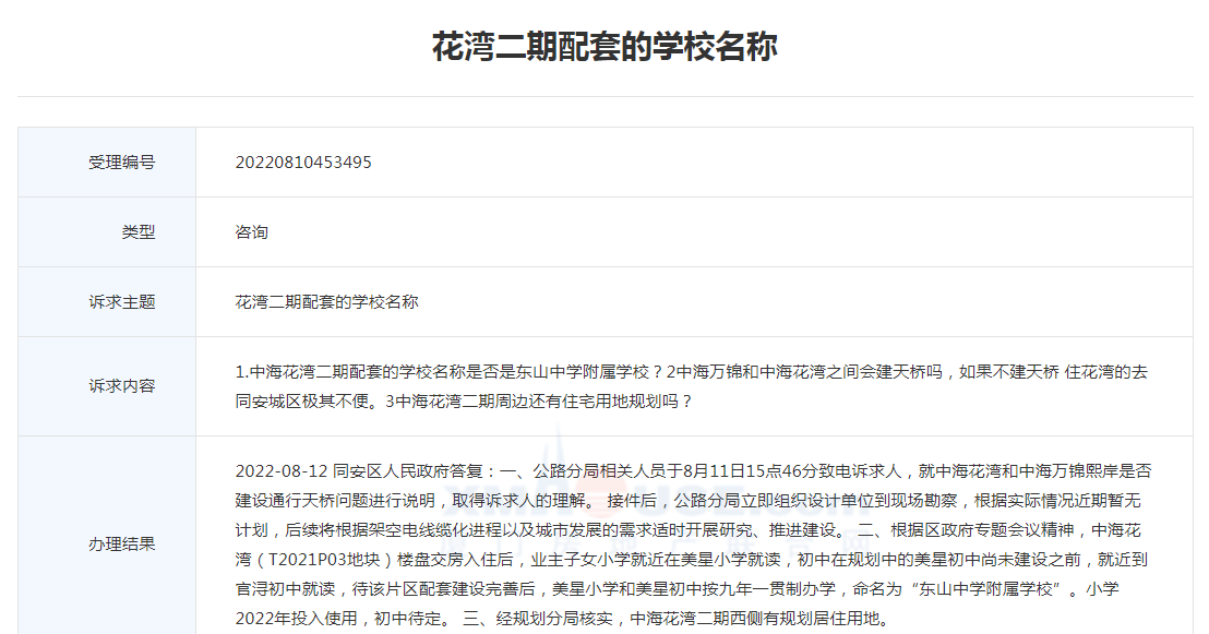 二、根據(jù)區(qū)政府專題會議精神,中海花灣(T2021P03地塊)樓盤交房入住后,業(yè)主子女小學(xué)就近在美星小學(xué)就讀,初中在規(guī)劃中的美星初中尚未建設(shè)之前,就近到官潯初中就讀,待該片區(qū)配套建設(shè)完善后,美星小學(xué)和美星初中按九年一貫制辦學(xué),命名為“東山中學(xué)附屬學(xué)校”。小學(xué)2022年投入使用,初中待定。