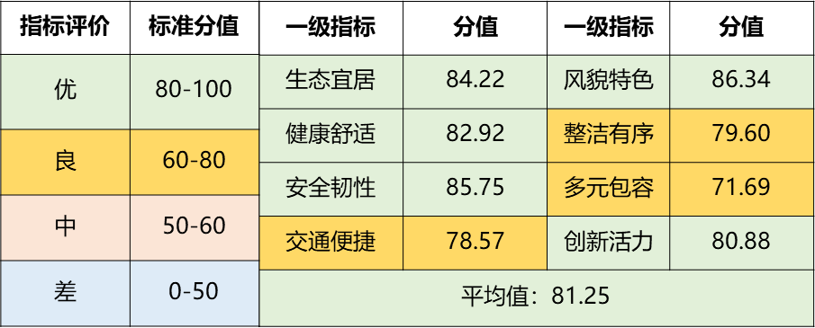 2022年度,按照住建部關(guān)于城市體檢的工作要求,從生態(tài)宜居、健康舒適、安全韌性、交通便捷、風(fēng)貌特色、整潔有序、多元包容、創(chuàng)新活力8個方面,以“69+9”項指標(biāo)體系為基礎(chǔ)進(jìn)行全面體檢。