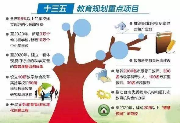 2017年開始,高中階段逐步實施免費教育;到2020年,全面實施高中階段免費教育。這是廈門市教育局15日晚間公布的《廈門市“十三五”教育事業(yè)發(fā)展專項規(guī)劃》(以下簡稱“十三五”規(guī)劃)中透露的。也就是說,從小學算起,孩子在廈門上學將實現(xiàn)12年免費教育。
