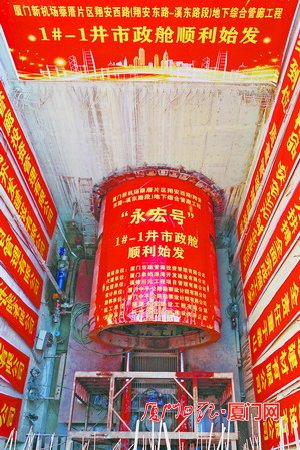 昨日,廈門(mén)新機(jī)場(chǎng)蔡厝片區(qū)翔安西路(翔安東路-溪東路段)地下綜合管廊工程“永宏號(hào)”頂管始發(fā)。(記者 王協(xié)云 攝)