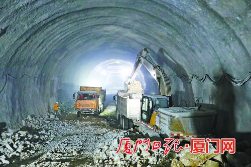 昨日,海滄疏港通道主體隧道全線貫通。圖為工程機(jī)械正在貫通處進(jìn)行出碴作業(yè)。(記者 王協(xié)云 攝)