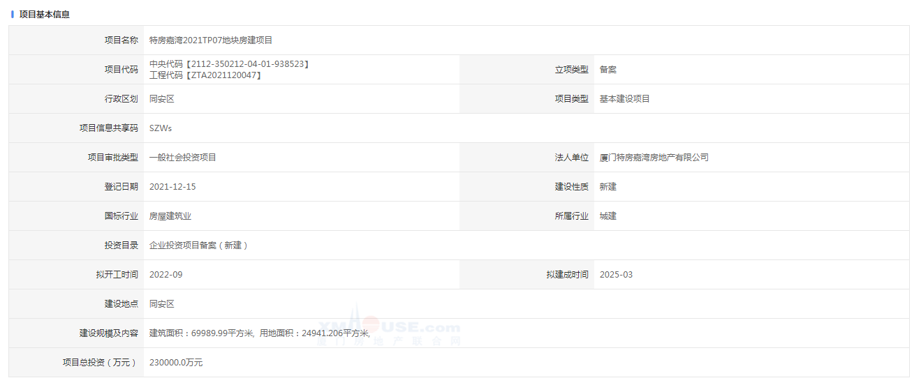 12月中旬,特房嘉灣2021TP07地塊房建項目報建信息公布。