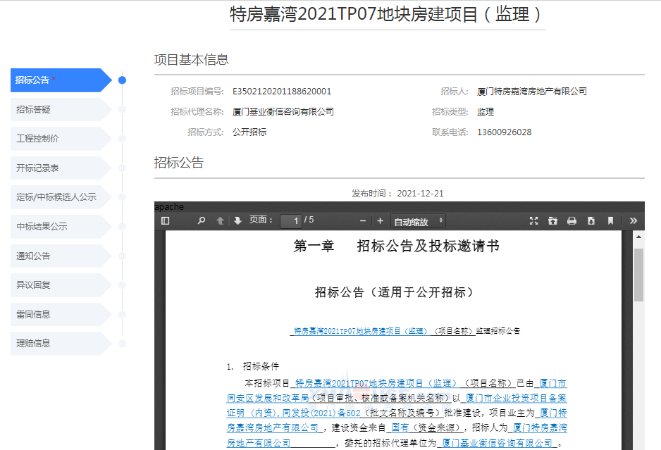 近日,廈門公共資源交易網(wǎng)發(fā)布特房嘉灣2021TP07地塊房建項目(監(jiān)理)招標(biāo)。