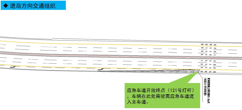 ? 通行區(qū)段:進島方向57號燈桿至121號燈桿段(如圖示)