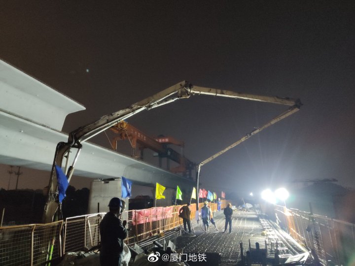 據(jù)廈門地鐵消息,29日晚上,在廈門軌道交通4號線軟三東站至后溪站區(qū)間的高架橋上,隨著最后一孔收口梁的混凝土澆筑完成,軟三東站至蔡厝站區(qū)間實現(xiàn)全線貫通,這標(biāo)志著軌道4號線關(guān)鍵工序取得重大進展。