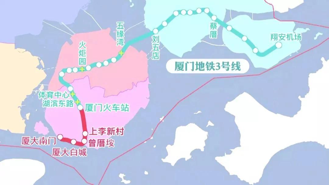 廈門地鐵3號線起于廈門火車站,止于翔安機場站,全長36.7公里,設車站26座,于2016年8月全線開工。