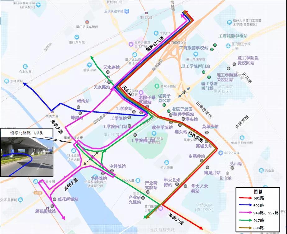 該公交線路調(diào)整至集美北大道、天水路、集美大道繞行,并減停工商旅游學(xué)校、理工學(xué)院西門、老院子景區(qū)、廈門工學(xué)院南門2(往廈門北站)。