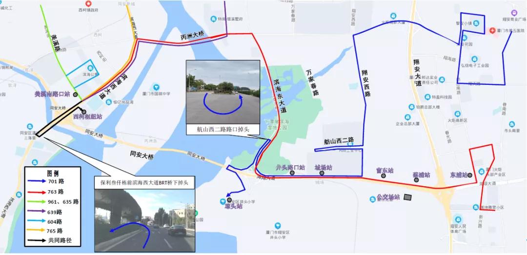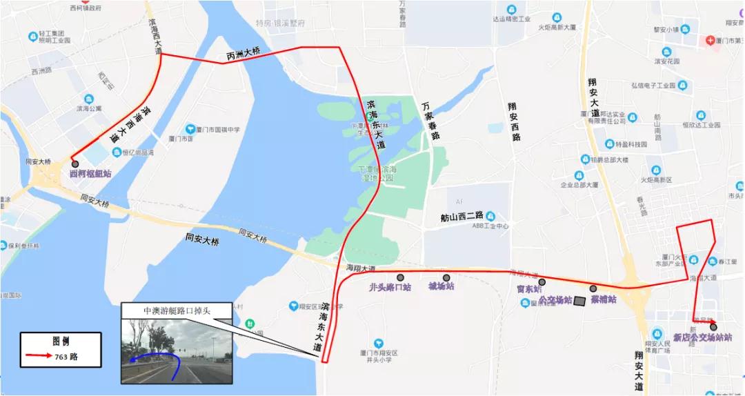 下行:第一碼頭始發(fā),行至杏林西路新源路口,改經(jīng)新源路、西濱路至新源路口。