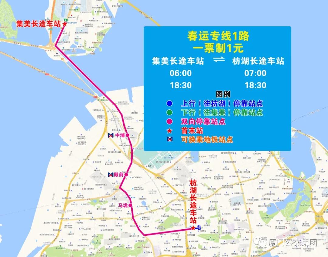 春運(yùn)專線1路(集美長(zhǎng)途車站—枋湖長(zhǎng)途車站)