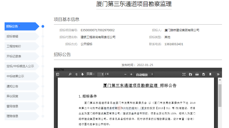 最新!廈門第三東通道又一招標(biāo)公告發(fā)布!