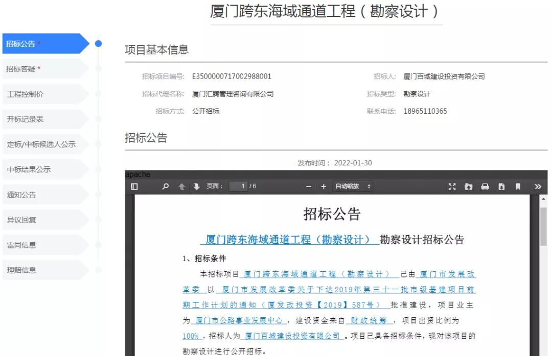近日,廈門跨東海域通道工程(勘察設(shè)計)發(fā)布,意味著離開工更進(jìn)一步了!