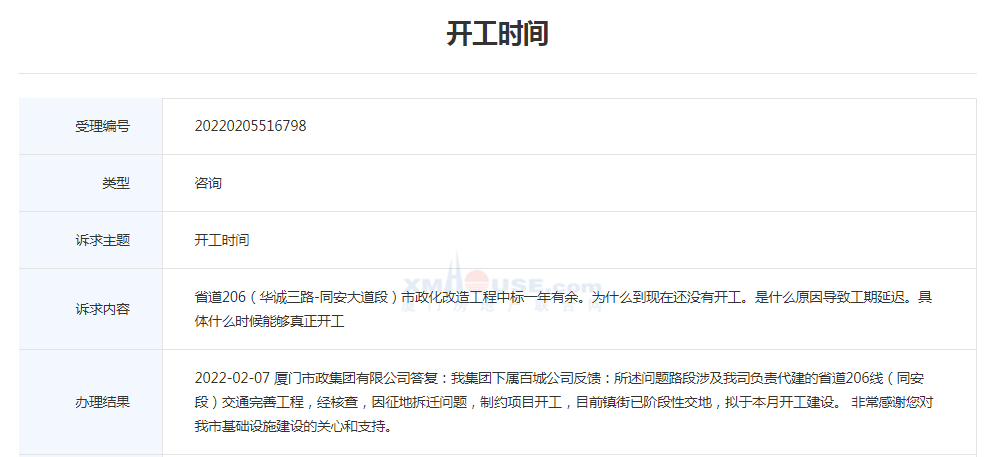 近日,有網(wǎng)友詢問省道206(華誠三路-同安大道段)開工時(shí)間。