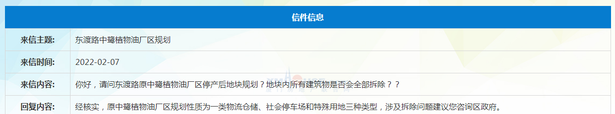 網(wǎng)友:你好,請(qǐng)問東渡路原中鷺植物油廠區(qū)停產(chǎn)后地塊規(guī)劃?地塊內(nèi)所有建筑物是否會(huì)全部拆除??