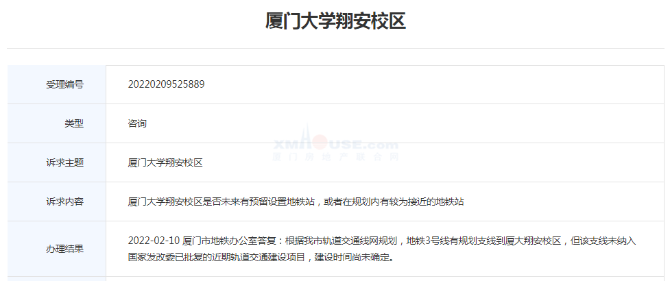 近日,有網(wǎng)友咨詢廈門(mén)大學(xué)翔安校區(qū)地鐵相關(guān)問(wèn)題。