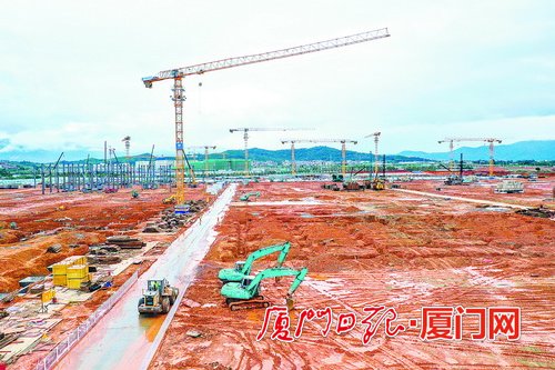 項目位于同翔高新城洪塘片區(qū),目前在建的項目(一期)總投資70億元,總建筑面積約71萬平方米,擬建設(shè)新型鋰離子電池基地。這是寧德時代控股的集生產(chǎn)、銷售、結(jié)算等功能于一體的國內(nèi)集團總部,也是落戶廈門的又一百億量級工業(yè)項目。(記者 張奇輝 攝)
