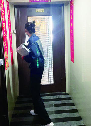 ■市建設(shè)局工作人員上門發(fā)送《責(zé)令限期交納通知書》。