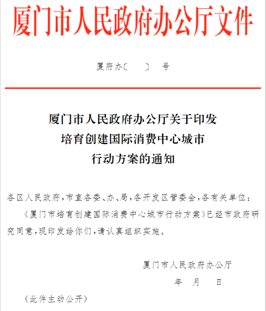 剛剛,廈門(mén)市人民政府辦公廳發(fā)布關(guān)于培育創(chuàng)建國(guó)際消費(fèi)中心城市行動(dòng)方案的通知,一起來(lái)看看吧~