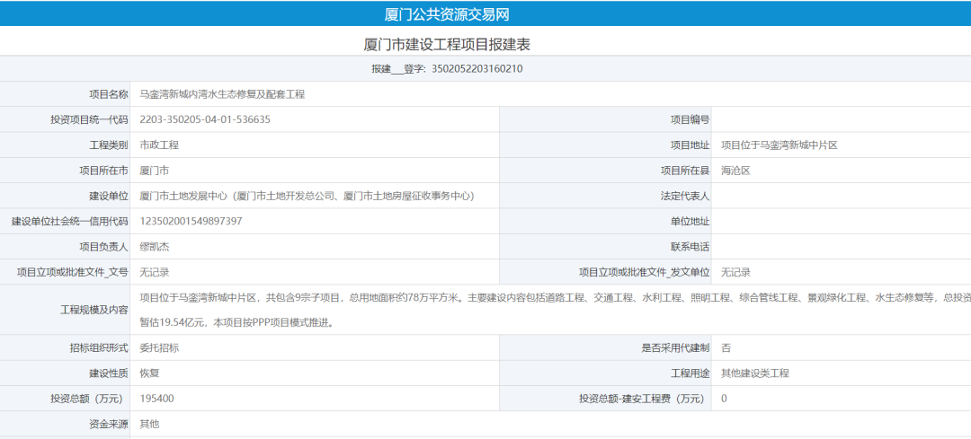馬鑾灣新城內(nèi)灣水生態(tài)修復(fù)及配套工程報建,總投超19億