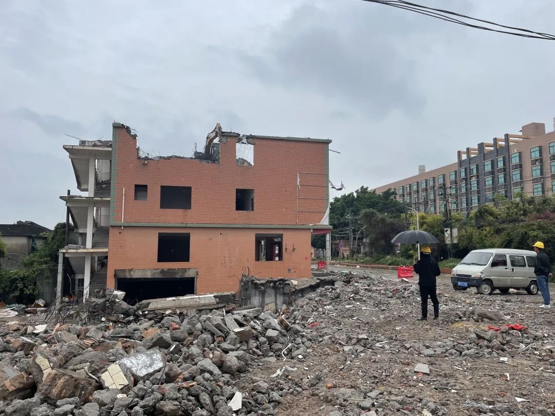 “轟轟轟……”在確保安全的前提下,一臺大型機械冒雨拆除一棟已搬遷騰空的房屋。四周拉起了警戒線,工作人員在現(xiàn)場維護,協(xié)助開展拆除工作。指揮部以騰空一戶拆除一戶的工作方式,確保拆除進度不松懈,全力打響打好項目簽約、拆除“雙清零”攻堅戰(zhàn)。