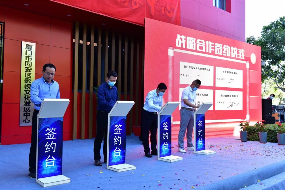 同安區(qū)影視文化發(fā)展中心分別與廈門市眾星拱月影視有限公司、廈門市同安區(qū)依程銘影視工作室簽約,廈門裕勤影業(yè)有限公司與同安新民街道,中信悅星影視基地與同安區(qū)文旅局分別簽約。