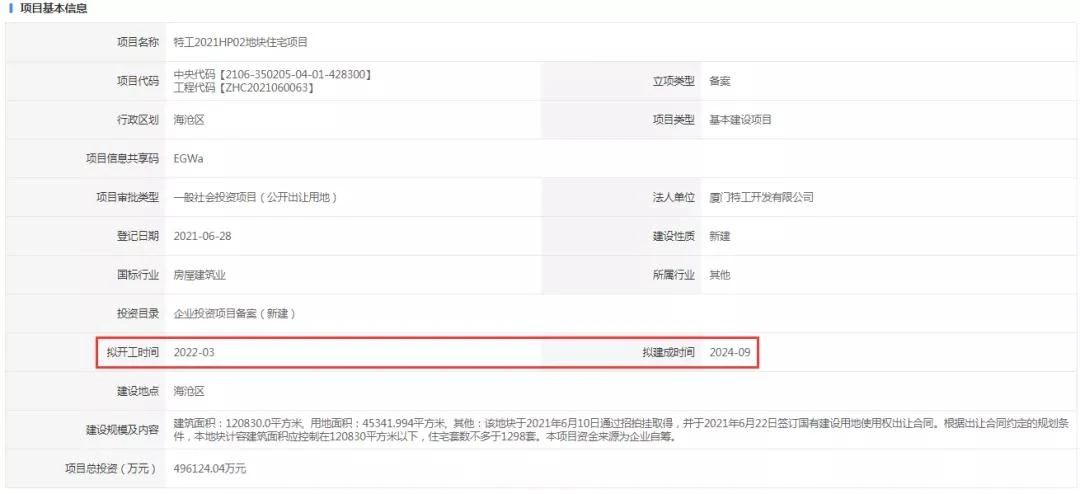據(jù)此前發(fā)布的信息,該項(xiàng)目總投資496124.04萬元,計(jì)劃2022年3月開工,預(yù)計(jì)2024年9月建成。