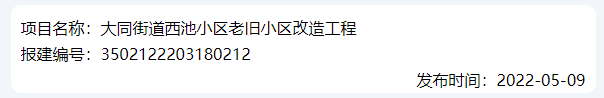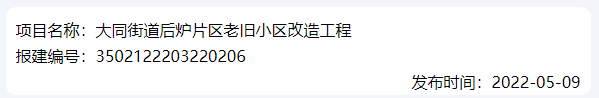 5月9日,同安區(qū)的大同街道西池小區(qū)老舊小區(qū)改造工程報建: