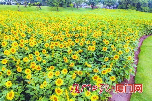 廈門市園林植物園西山園上千平方米向日葵盛放。