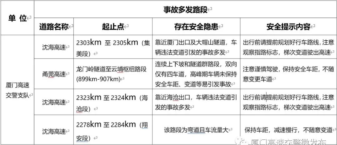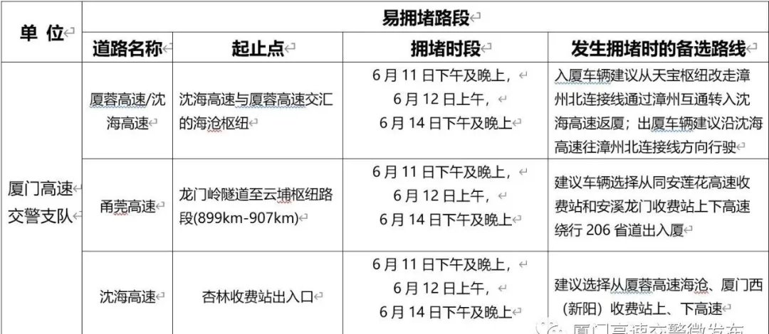 以下為2021廈門端午節(jié)高速易擁堵路段+繞行路線
