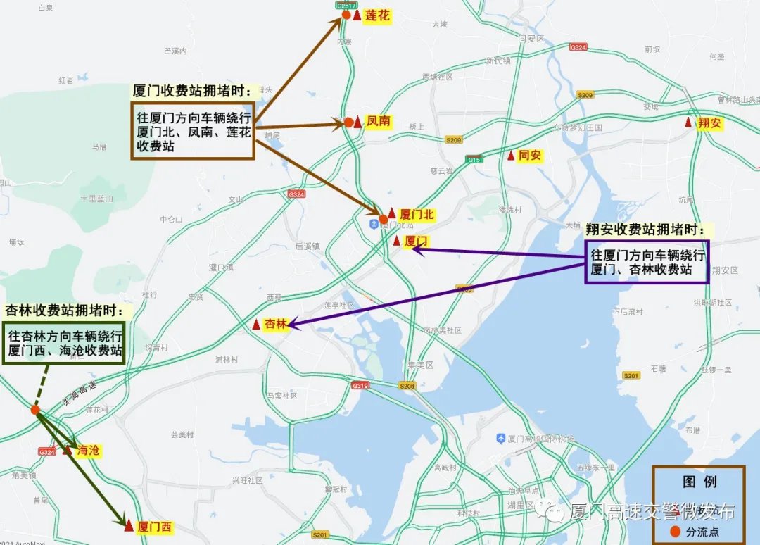 杏林、廈門、翔安收費站發(fā)生擁堵,繞行示意圖