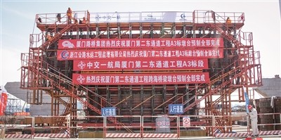 關(guān)于第二東通道(翔安大橋),5月17日隨著最后一方混凝土澆筑完成,中交一航局翔安大橋項(xiàng)目團(tuán)隊(duì)順利完成翔安大橋海中區(qū)最后一件墩臺(tái)澆筑,這標(biāo)志著翔安大橋跨海段大型墩臺(tái)全部完成預(yù)制,為2023年春節(jié)前全線(xiàn)貫通打下堅(jiān)實(shí)基礎(chǔ)。