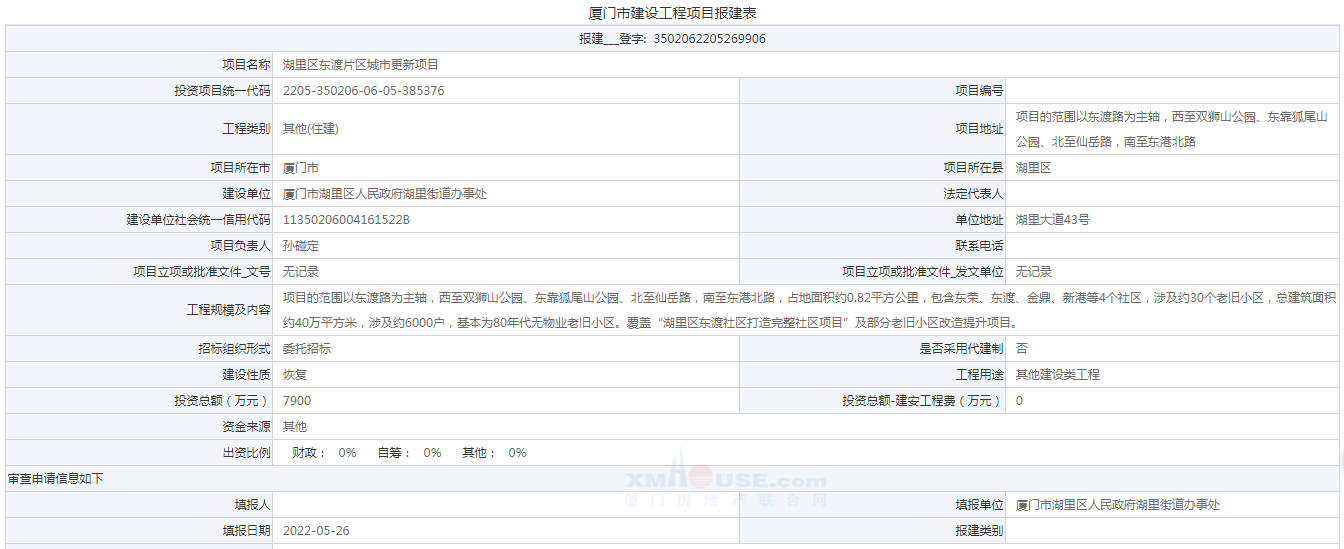 剛剛,湖里區(qū)東渡片區(qū)城市更新項(xiàng)目報(bào)建信息公布。