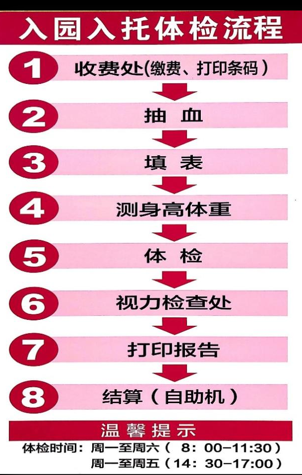 3、 寶寶入園入托體檢當日無需空腹。保證寶寶在體檢前一天休息好,以免影響結(jié)果的準確性。