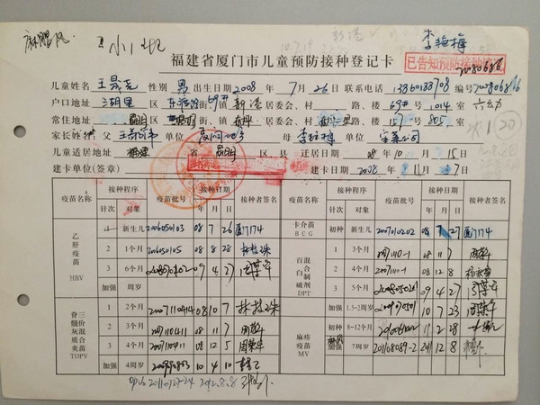 1.“免疫卡”,就是紅本的《廈門市兒童預(yù)防預(yù)防接種證》,家長還要到社區(qū)服務(wù)中心去拿白色的“福建省廈門市兒童預(yù)防接種登記卡”,不過,今年,據(jù)說思明區(qū)的幼兒園,如果是屬于市婦幼管的,那么,不用再去拿這個登記卡了,但是,如果是區(qū)婦幼管的,仍然要。