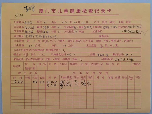 2.”健康卡”到底是什么,很多家長就是不明白。大致情況是這樣,健康卡的全稱是:廈門市兒童健康檢查記錄卡,是孩子出生40天后到社區(qū)醫(yī)院(婦幼)體檢建的檔,此次要去固定體檢的機構(gòu)(社區(qū)醫(yī)院或者婦幼)領(lǐng)取其中的黃卡,交給幼兒園。不過,如果沒有,也不要緊,只要在這次入園檢查時,請醫(yī)生建檔(具體手續(xù)咨詢醫(yī)院),拿出黃卡就可以。