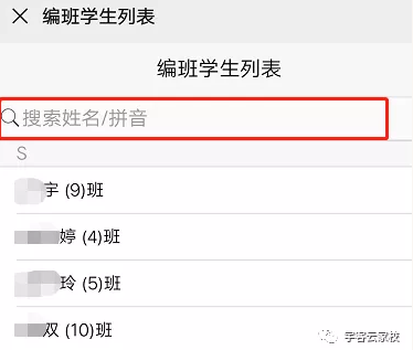3、搜索框出可輸入自己的名字或班級(jí),比如:輸入班級(jí)號(hào)7,會(huì)出來七班的分班結(jié)果