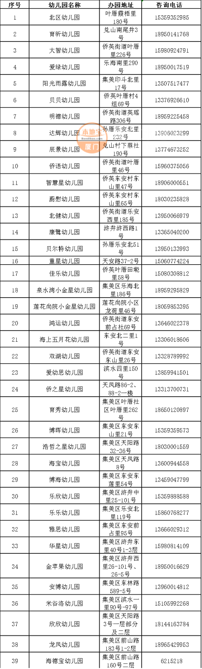 溫馨提示:微信搜索廈門(mén)便民網(wǎng)公眾號(hào),對(duì)話(huà)框回復(fù)【幼兒園】獲取廈門(mén)幼兒園網(wǎng)上報(bào)名入口+時(shí)間、劃片查詢(xún)?nèi)肟?、各區(qū)招生政策、收費(fèi)標(biāo)準(zhǔn)、幼兒園名單等!