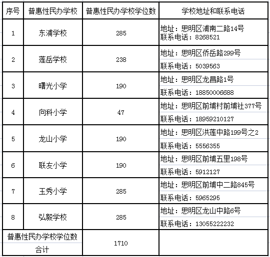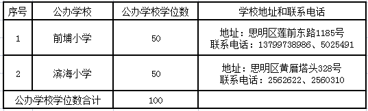思明區(qū)招收隨遷子女積分入學(xué)的學(xué)校及學(xué)位情況: