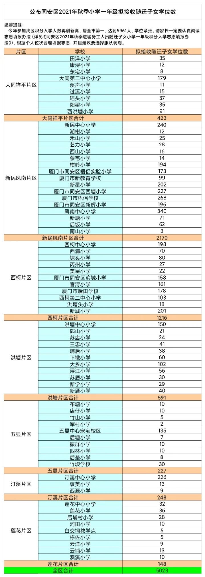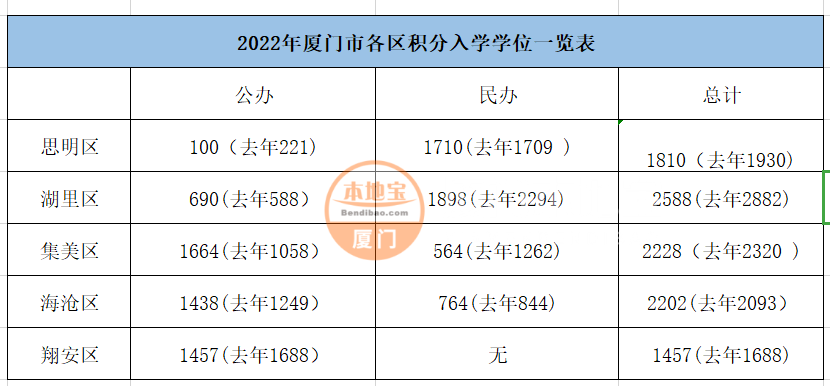 2022年湖里區(qū)、思明區(qū)、集美區(qū)、海滄區(qū)、翔安區(qū)五區(qū)公布了公辦、民辦小學(xué)積分入學(xué)學(xué)校學(xué)位情況(如下圖),同安區(qū)暫未公布區(qū)信息小編持續(xù)跟進(jìn)中~