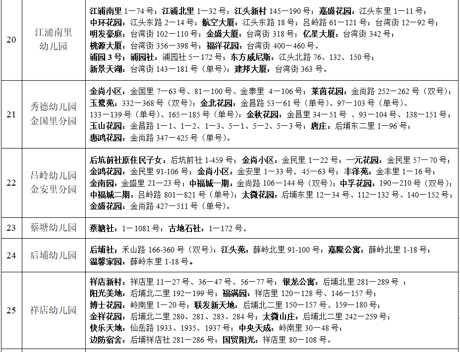1.湖里區(qū)2022年秋季公辦幼兒園招生劃片范圍一覽表